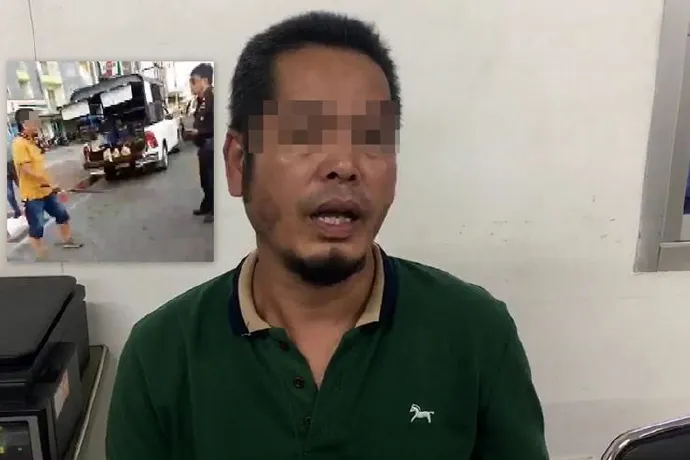 พัทยา-ตำรวจพัทยาเชิญพ่อค้าดาบซามูไรเลือดร้อนไล่ฟันเทศกิจมาพบแจ้ง3ข้อหาเจ้าตัวยอมรับทำผิดขอสังคมดูไว้เป็นตัวอย่างมีคดีความเดือดร้อนเสียแต่เงินทอง