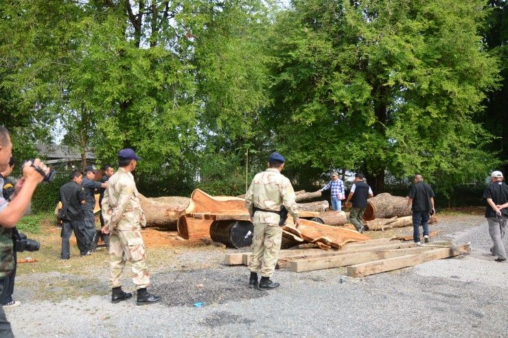 เจ้าหน้าที่ยึดไม้หวงห้ามจำนวนมากรอตรวจสอบขอแปรรูปถูกต้องหรือไม่