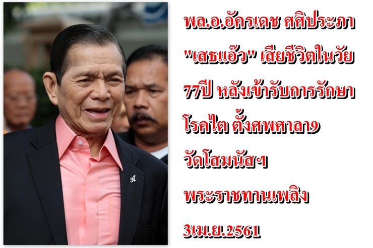 "เสธแอ๊ว"พล.อ.อัครเดช ศศิประภา วัย77ปีเสียชีวิตแล้วหลังเข้ารับการรักษาโรคไต ตั้งศพวัดโสมนัสฯ ศาลา9พระราชทานน้ำหลวงอาบศพ28มี.ค.61