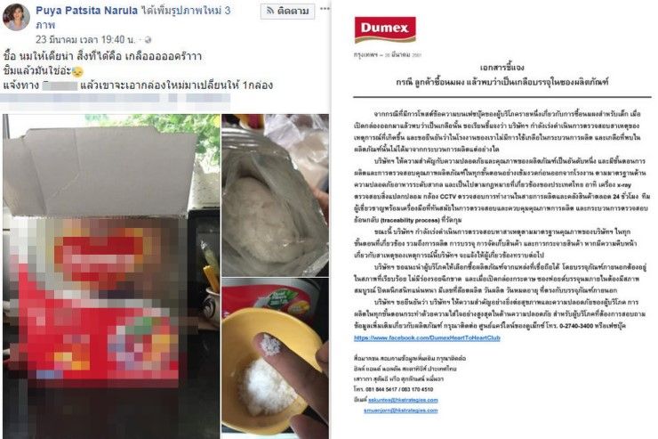 เมื่อวันที่ 26 มี.ค. หลังจากคุณแม่ผู้ใช้เฟซบุ๊กชื่อ “Puya Patsita Narula” โพสต์เหตุการณ์ที่ซื้อนมผงเด็กยี่ห้อดังมาเตรียมชงให้ลูกดื่มกิน แต่พอเปิดมาต้องประหลาดใจ เพราะข้างในกล่องไม่ใช่นมผง แต่เป็นเกลือนั้น