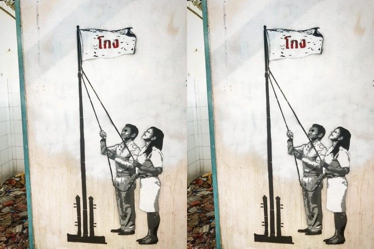 ผลงานใหม่จากศิลปินกราฟฟิตี้เจ้าของภาพเสือดำและนาฬิกาบิ๊กป้อม แนวคิดชูคำว่า "โกง" พร้อมกลอน จินดามณี 2018