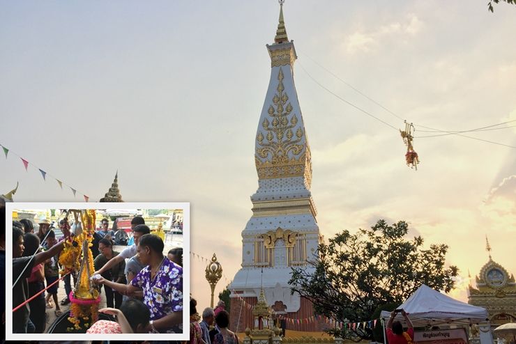 สงกรานต์ปี61หนึ่งปีมีครั้งเดียวชักรอกสรงน้ำยอดพระธาตุพนม