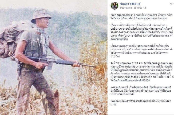"ขัตติยา สวัสดิผล"ลูกเสธ.แดงโพสต์ข้อความรำลึกครบรอบ8ปีที่พ่อถูกลอบยิง ชี้ประเทศต้องการทหารที่ปกป้องประชาชน ไม่ใช่ทหารการเมือง