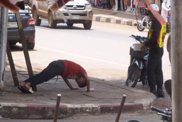 ตำรวจสั่งวัยรุ่นขี่จักรยานยนต์ไม่สวมหมวกวิดพื้นเเทนเสียค่าปรับ