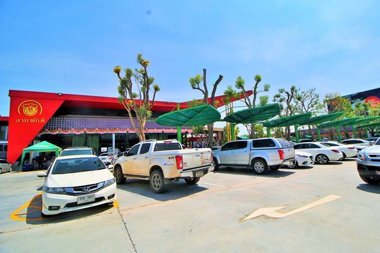 นายฉัตรชัย กล่าวอีกว่า ภายในลานพักดีมีห้องรับรองสำหรับกลุ่มคนขับรถตู้ รถโดยสาร คือเหมือนเป็นมุม Reception มุมต้อนรับ มีเคาท์เตอร์บาร์อาหาร และผลไม้ให้ ซึ่งจะอยู่บริเวณชั้น 2 ตอนนี้ยังไม่เรียบร้อย สำหรับพื้นที่ด้านล่างแบ่งเป็น 3 โซน โดยโซนแรก คือ Food Hall ตรงโดมหลังคาแดง ออกแบบโดยสถาปนิกบวกกับฮวงจุ้ย ให้ดูมีสีสันโชคลาภ ถัดมาเป็นโซนสวน Green Zone เป็นสวนทั้งหมด มี Shop 4 ห้อง ขายอาหาร ขายขนมไทย ขายของฝากและผลไม้ตามฤดูกาล พร้อมซุ้มขายของกินเล่นอะไรง่ายๆ สามารถซื้อหิ้วกลับได้ มีร้านติดฟิล์มกรองแสง 3M ร้านอาหารทะเล “ลานทะเล” และสำหรับร้านกาแฟ “ไทเกอร์ คาเฟ่” ที่เราตั้งใจทำขึ้นมาเป็นสูตรเข้มข้นโดยเฉพาะที่จะทำให้คนเดินทางรู้สึกผ่อนคลายและตาสว่าง เพื่อการขับขี่ที่ปลอดภัยให้ผู้ขับขี่