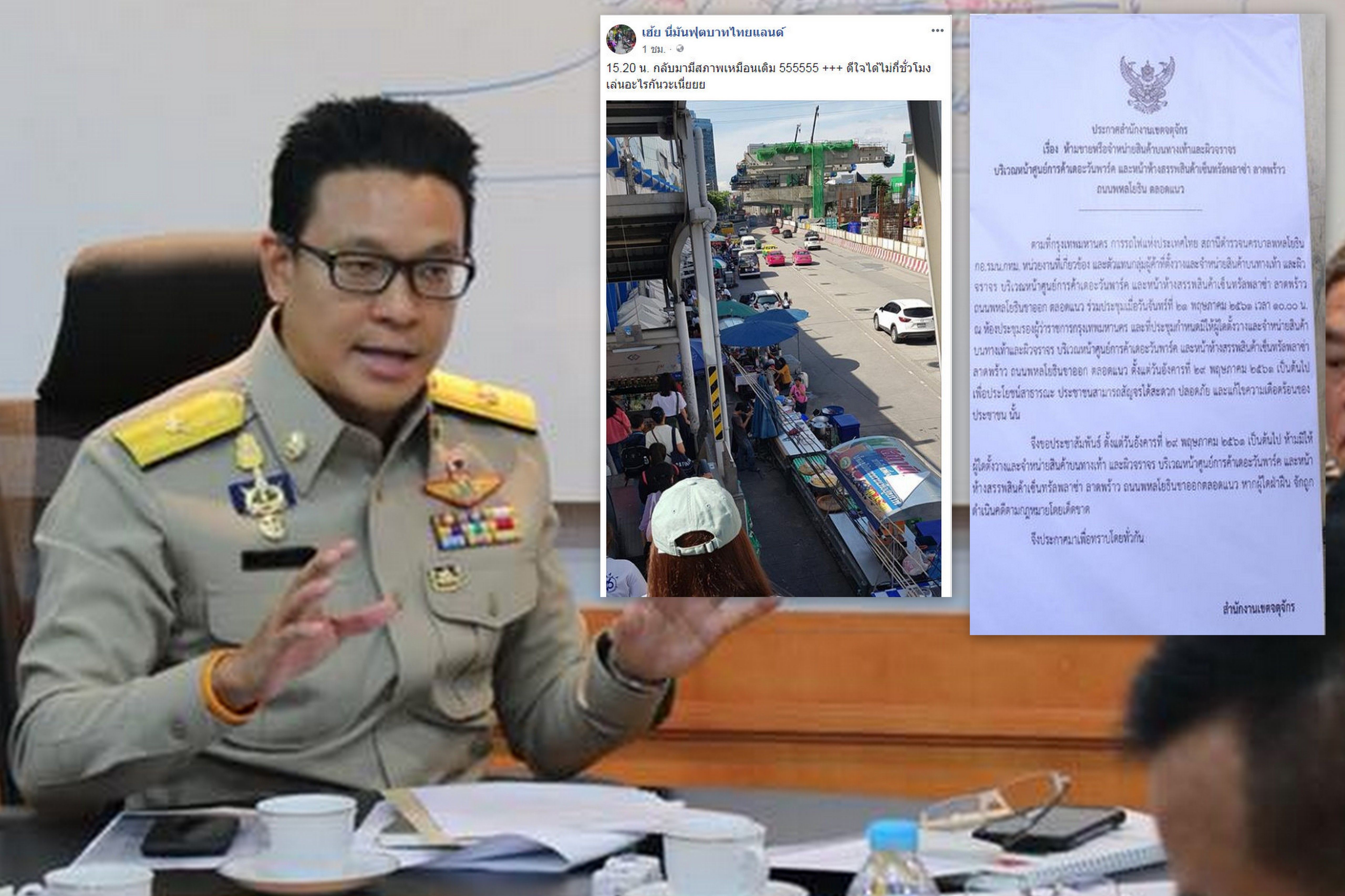 รองผู้ว่าฯ กทม. โต้เพจฟุตบาทไทยแลนด์ กรณีวิจารณ์การจัดระเบียบทางเท้าหน้าห้างฯลาดพร้าว ว่าสั่งห้ามขายตั้งแต่ 29 พ.ค. ไม่ใช่วันนี้