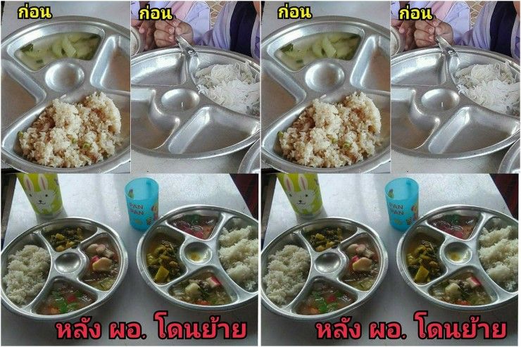หน้าตาและคุณภาพอาหารกลางวันของเด็กๆ เปลี่ยนแปลงไปจากเดิมอย่างมาก ก่อนหน้านี้อาหารในถาดขาดสารอาหารครบ 5 หมู่ ไม่มีผักและเนื้อสัตว์ มีเพียงเส้นขนมจีน ข้าวเปล่า กับต้มจืดที่มีแต่ฟัก 3-4 ชิ้นเท่านั้น กลายเป็นต้มจับฉ่ายผักรวม มีลูกชิ้น ปูอัด หมูสับ แครอทและผักกาดขาว มากกว่านั้นยังมีของหวานเป็นขนมตบท้ายของคาวอีกด้วย