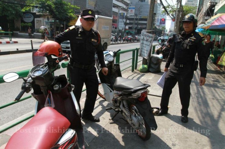 กทม.ส่งเจ้าหน้าที่เทศกิจประจำ 115 ถนน จับ-ปรับทันทีจักรยานยนต์ขี่บนทางเท้าทั้งช่วงเช้าและเย็น