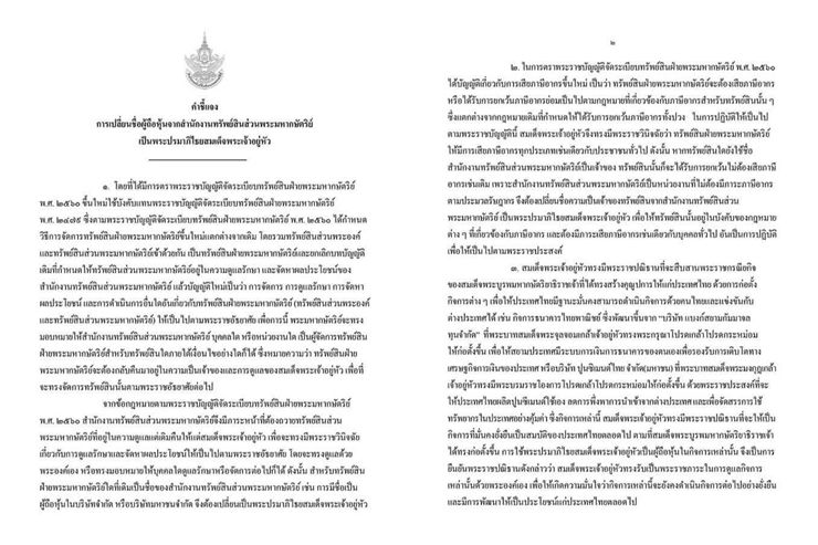 สำนักงานทรัพย์สินส่วนพระมหากษัตริย์ชี้แจงการเปลี่ยนชื่อผู้ถือหุ้นจากสำนักงานทรัพย์สินฯเป็นพระปรมาภิไธยสมเด็จพระเจ้าอยู่หัว