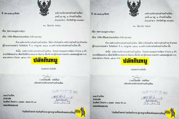 ปฏิบัติการหมาเฝ้าบ้าน เผยเเพร่เอกสารขอความอนุเคราะห์หมูจากบริษัทดัง เพื่อนำไปเลี้ยงรับผอ.ใหม่