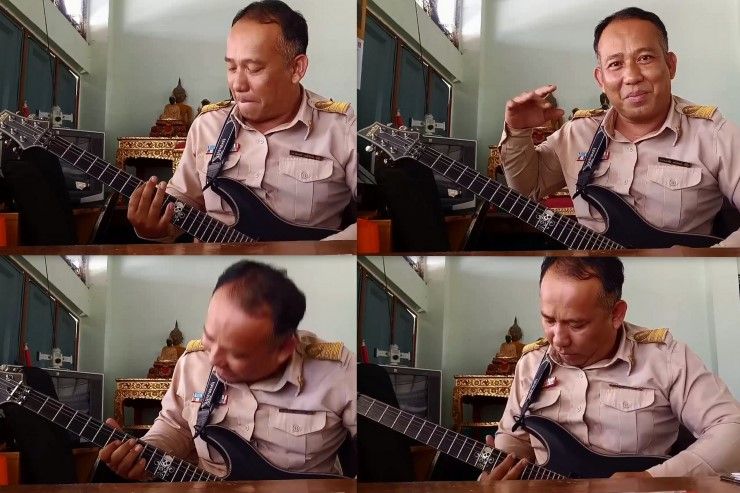 คุณครูโรงเรียนในจังหวัดพระนครศรีอยุธยา โชว์โซโล่กีต้าร์เพลงร็อคสุดมัน
