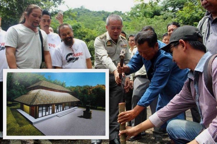 อ.เฉลิมชัยทำพิธีตอกหลักเริ่มต้นสร้างศาลาหอศิลป์-รูปปั้นจ่าแซมที่ถ้ำหลวง