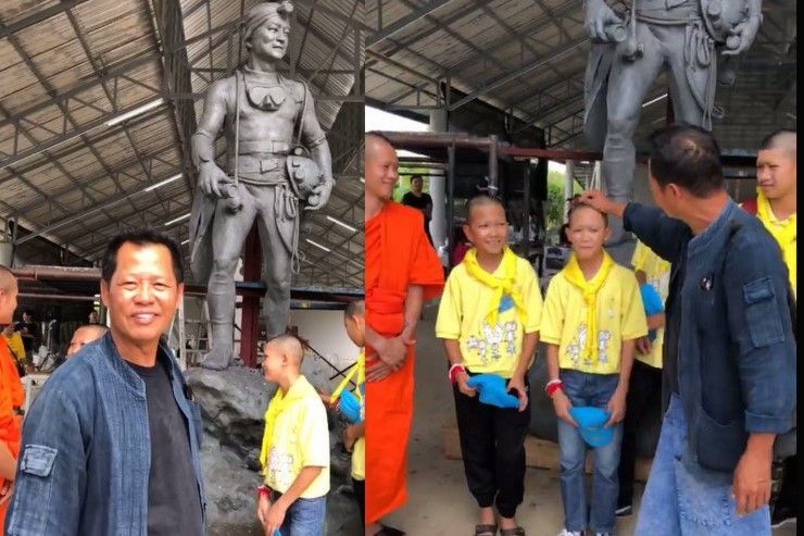ทีมหมูป่าพร้อมภรรยานาวาตรี สมาน เดินทางไปขอบคุณอ.เฉลิมชัย ที่สร้างอนุสาวรีย์จ่าแซม ที่วัดร่องขุ่น