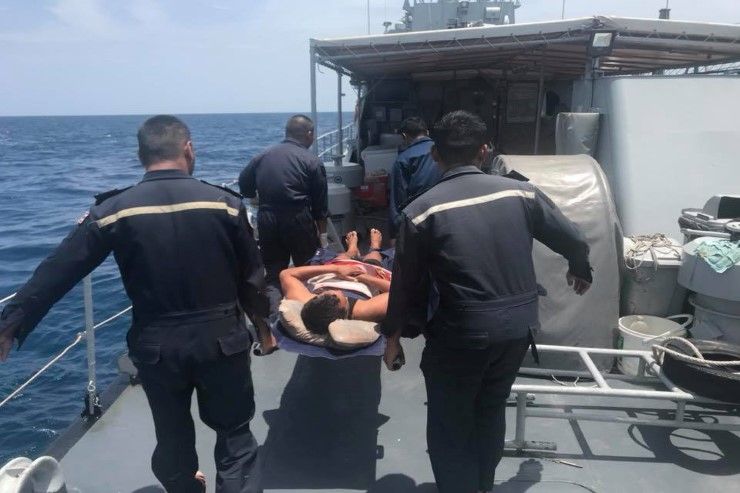 ทัพเรือภาค 2 ส่งเรือไปช่วยลูกเรือประมงชาวกัมพูชาที่ถูกเชือกกว้านสมอตีจนหมดสติ ก่อนนำตัวส่งโรงพยาบาลสมุย