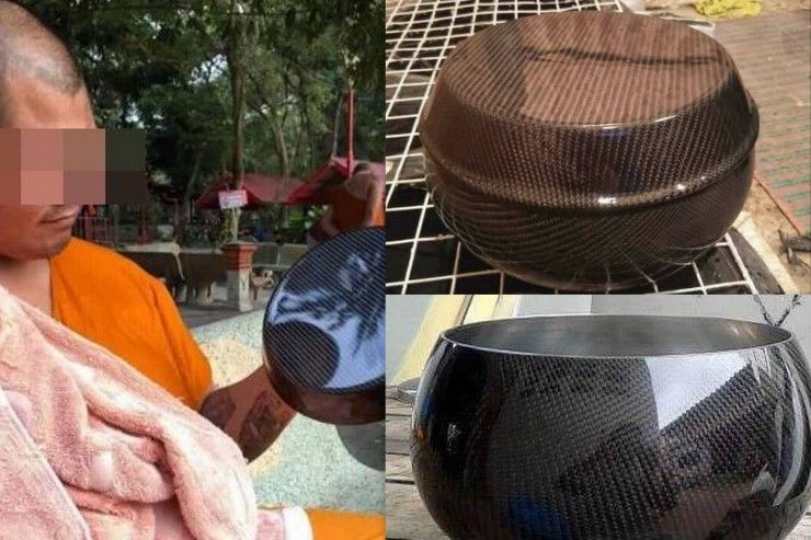 สังคมแห่แชร์พระสงฆ์วัดแห่งหนึ่งตกแต่งบาตรด้วยการหุ้มคาร์บอนสีดำเงา