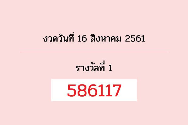 ตรวจผลสลากกินแบ่งรัฐบาล งวดประจำวันที่ 16 สิงหาคม 2561