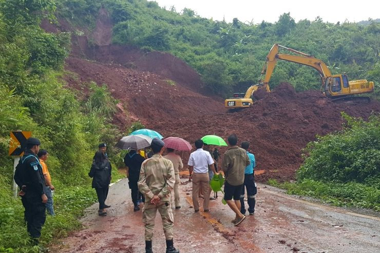 ที่อำเภอเฉลิมพระเกียรติ จ.น่าน กองดินขนาดมหึมาสไลด์ ทับถนนทางหลวง หมายเลข 1081 ปิดเส้นทาง อ.บ่อเกลือ -อ.เฉลิมพระเกียรติ บ้านง้อม หมู่ที 1 ต.ขุนน่าน ทำให้ชาวบ้าน 11 หมู่บ้าน ของตำบลขุนน่าน อ เฉลิมพระเกียรติ กว่า 5,000 คน ถูกตัดขาดไม่สามารถเดินทางเข้าไปในตัว อ.เฉลิมพระเกียรติได้ ทั้งการติดต่อกับทางราชการ ที่ว่าการอำเภอ และโรงพยาบาลเฉลิมพระเกียรติ