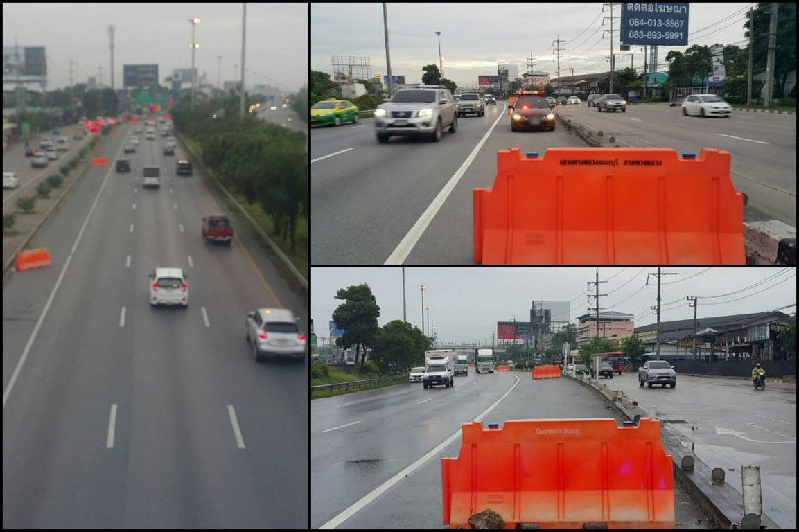 ตำรวจทางหลวงบางใหญ่ แก้ปัญหาวิ่งไหล่ทางด้วยการตั้งแบริเออร์ บริเวนถนนกาญจนาภิเษก