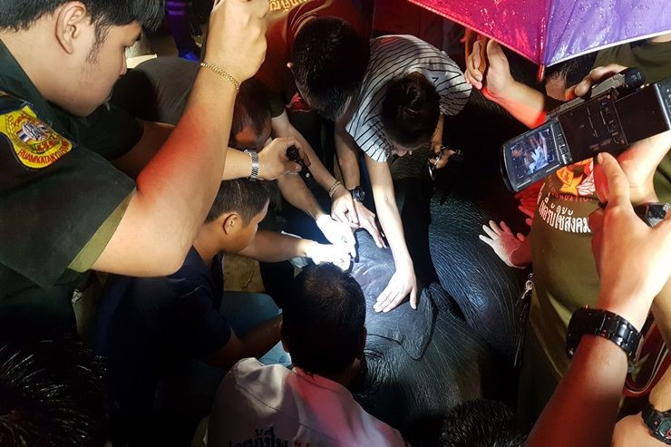 เมื่อเวลา 21.50 วันที่ 14 ก.ย.2561 ร.ต.อ.นพพร แสงสว่าง ร้อยเวรสภ.บางพลี จังหวัดสมุทรปราการ ได้รับแจ้งพลเมืองดีว่า มีช้างเร่ร่อนถูกไฟฟ้าดูด และตกท่อระบายน้ำ บริเวณถนนเทพารักษ์ ปากทางเข้าวัดบางพลีใหญ่(ใน) หรือวัดหลวงพ่อโต อ.บางพลี จ.สมุทรปราการ หลังรับแจ้งจึงรีบรุดไปตรวจสอบ พบว่าช้างอยู่ในสภาพตกไปในท่อระบายน้ำครึ่งตัว มีอาการหมดสติ จึงได้ประสาน มูลนิธิร่วมกตัญญู และเจ้าหน้าที่ทีมสัตวแพทย์จากสำนักงานปศุสัตว์จังหวัดสมุทรปราการ มาช่วยกันปั๊มหัวใจกันอย่างเต็มที่