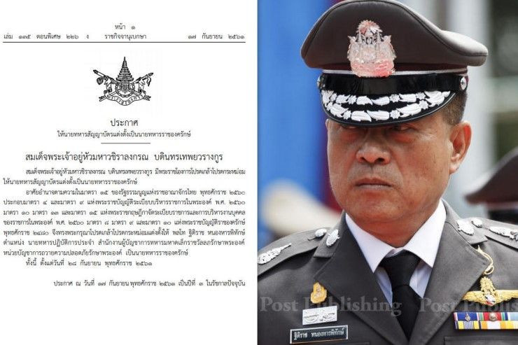 ราชกิจจาฯ เผยแพร่พระราชโองการโปรดเกล้าแต่งตั้งให้ พล.ท.ฐิติราช หนองหารพิทักษ์ เป็นนายทหารราชองครักษ์