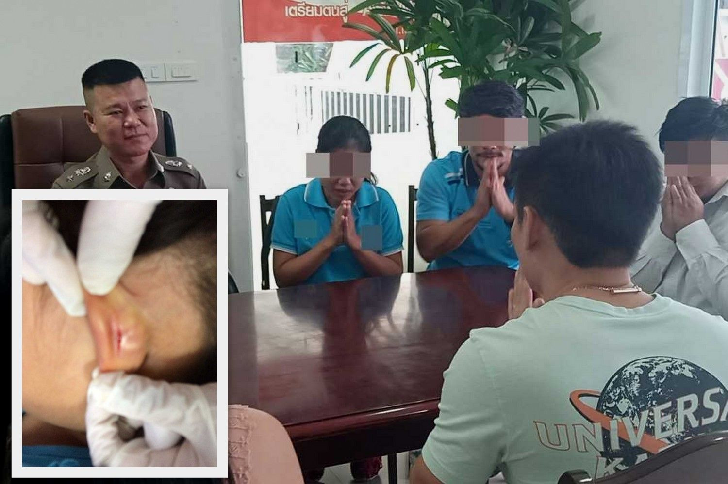 ครูพี่เลี้ยง-ผู้บริหารโรงเรียนเข้าพบตร. ขอโทษพ่อแม่เด็กหลังบิดหูจนเป็นแผล