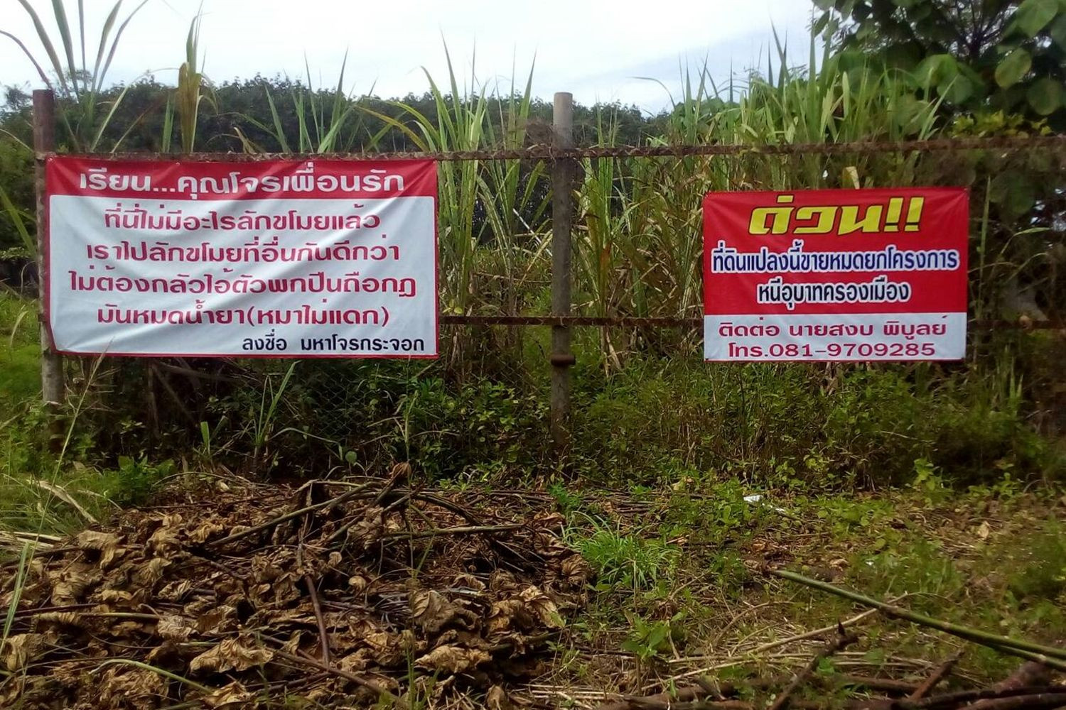 ที่ดินแปลงนี้ขายด่วน!เจ้าของปักป้ายบอกโจรไม่มีอะไรให้ขโมยแล้ว