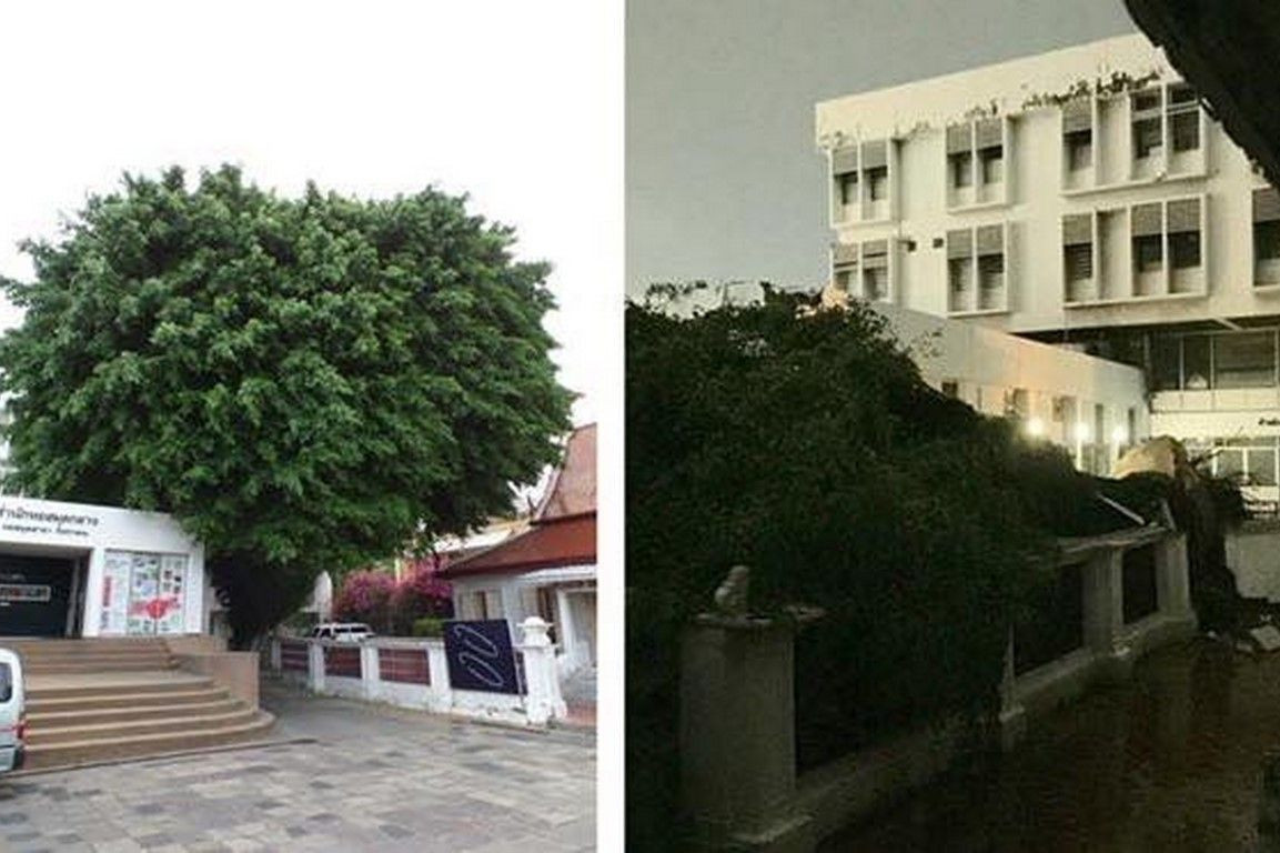 ต้นไทรรูปหัวใจ หน้าหอสมุด ม.ศิลปากร วังท่าพระ โค่นล้มเมื่อคืนวันที่ 29 ก.ย. หลังเจอฝนตกหนัก