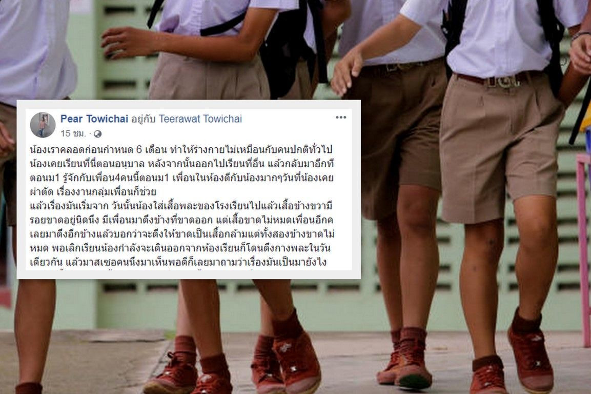 พี่สาวเด็ก ม.6 ถูกเพื่อน 4 คนแกล้งถอดกางเกงพละ เผยน้องชายมีร่างกายไม่ปกติ - รู้สึกแย่หากครูสั่งทำโทษถูกไล่ออก