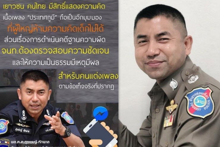 เพจฯพล.ต.ต.สุรเชษฐ์ เผยการดำเนินคดีกลุ่มนักแต่งเพลงประเทศกูมีว่าไปตามข้อเท็จจริง-แนะผู้ใหญ่ควรรับฟังความคิดเยาวชน