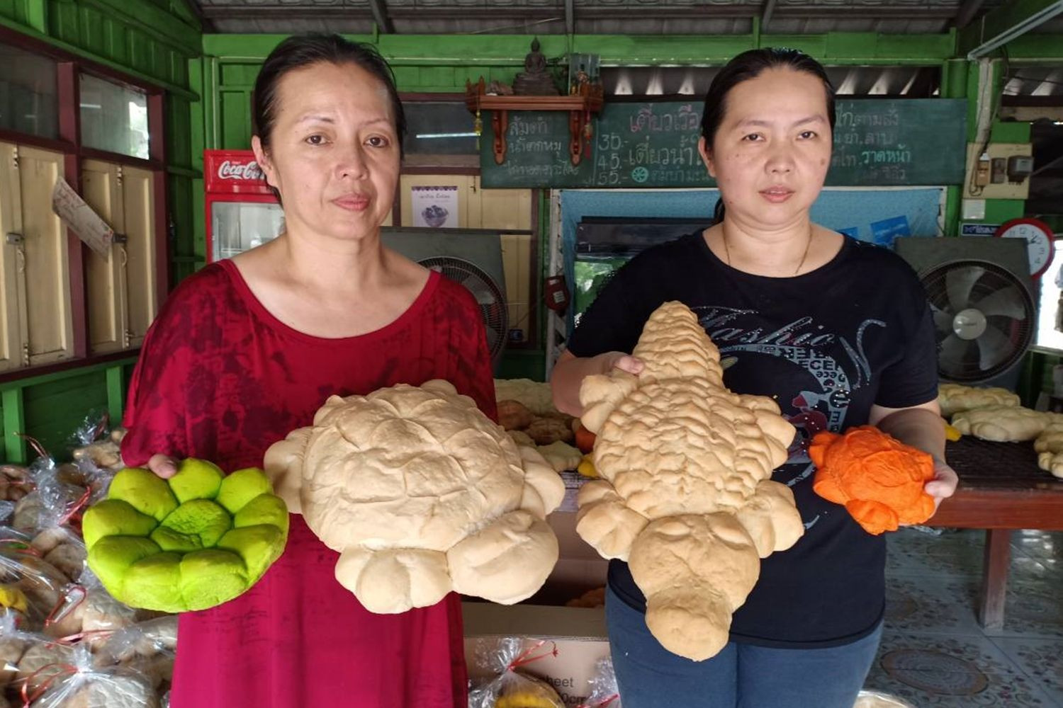 ปกติที่ร้านจะขายก๋วยเตี๋ยว แต่พอช่วง 2 เดือนก่อนถึงวันลอยกระทง จะมาเร่งทำขนมปังอบเป็นรูปสัตว์ชนิดต่างๆส่งขายในราคาชิ้นละ 25-30 บาท ปีหนึ่งขายได้มากกว่า 10,000 ตัว ลูกค้าส่วนใหญ่ เป็นร้านค้าส่งจากตลาดไท ตลาดสี่มุมเมือง หรือตลาดทั่วไปในเขตภาคกลาง และภาคอีสาน แต่ปีนี้ต้องขอบอกว่าขายไม่ดียอดสั่งซื้อลดลงเห็นอย่างได้ชัดไม่ทราบแน่ชัดว่ามาจากสาเหตุใด ทั้งที่ช่องทางการติดต่อซื้อขายสะดวกมากขึ้นกว่าเดิม เช่น สั่งซื้อทางมือถือ ทางไลน์ ทางเฟซบุ๊กให้ดูก่อนที่จะตัดสินใจสั่งซื้อหลายคนเชื่อว่าอาจเป็นเพราะเศรษฐกิจ