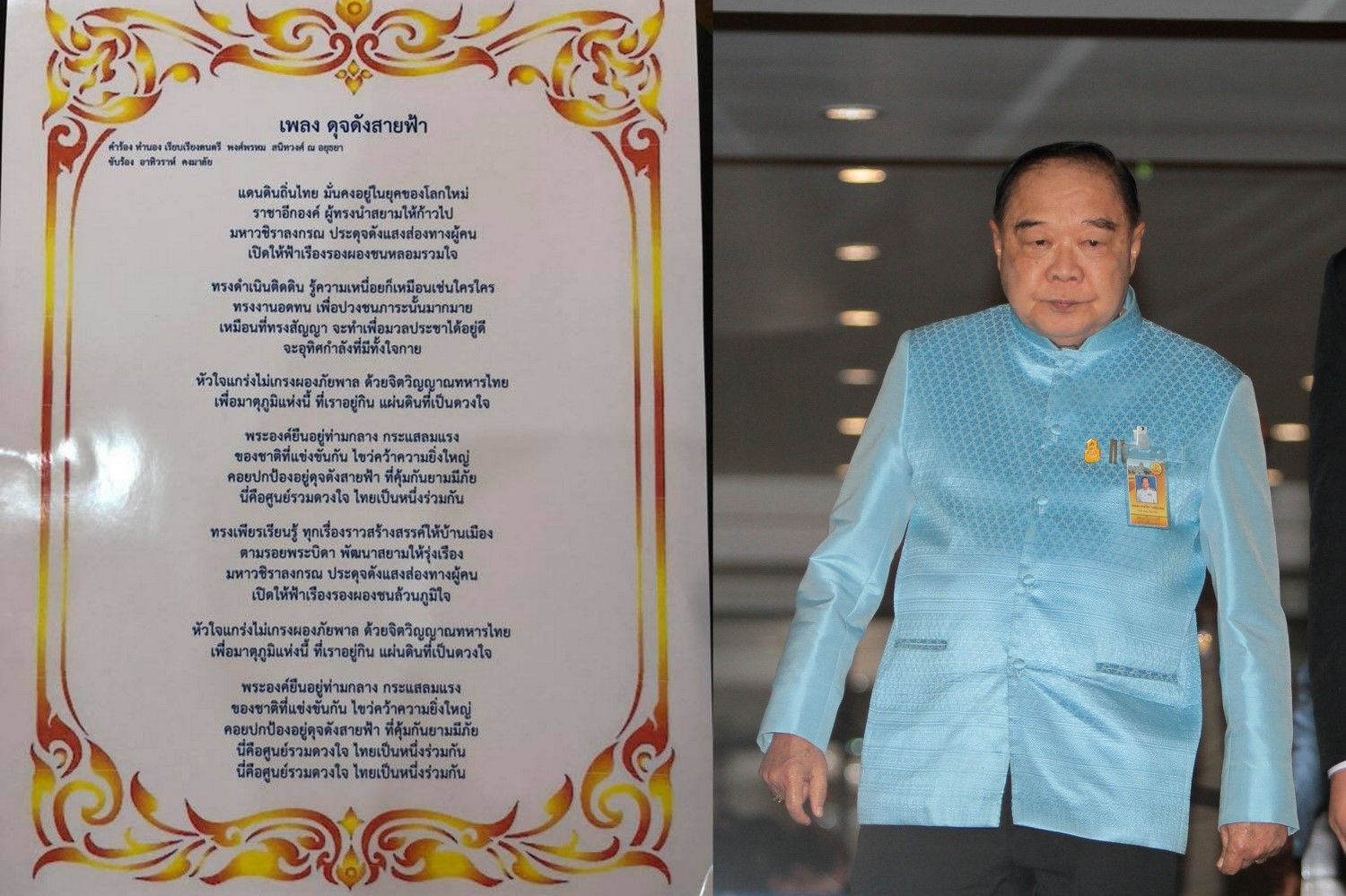 "สภากลาโหม"สั่งกองทัพเผยแพร่เพลง "ดุจดังสายฟ้า" เฉลิมพระเกียรติรัชกาลที่10 "พงศ์พรหม สนิทวงศ์ ณ อยุธยา" แต่งเนื้อร้อง-ทำนอง ขับร้องโดย ตูน บอดี้สแลม