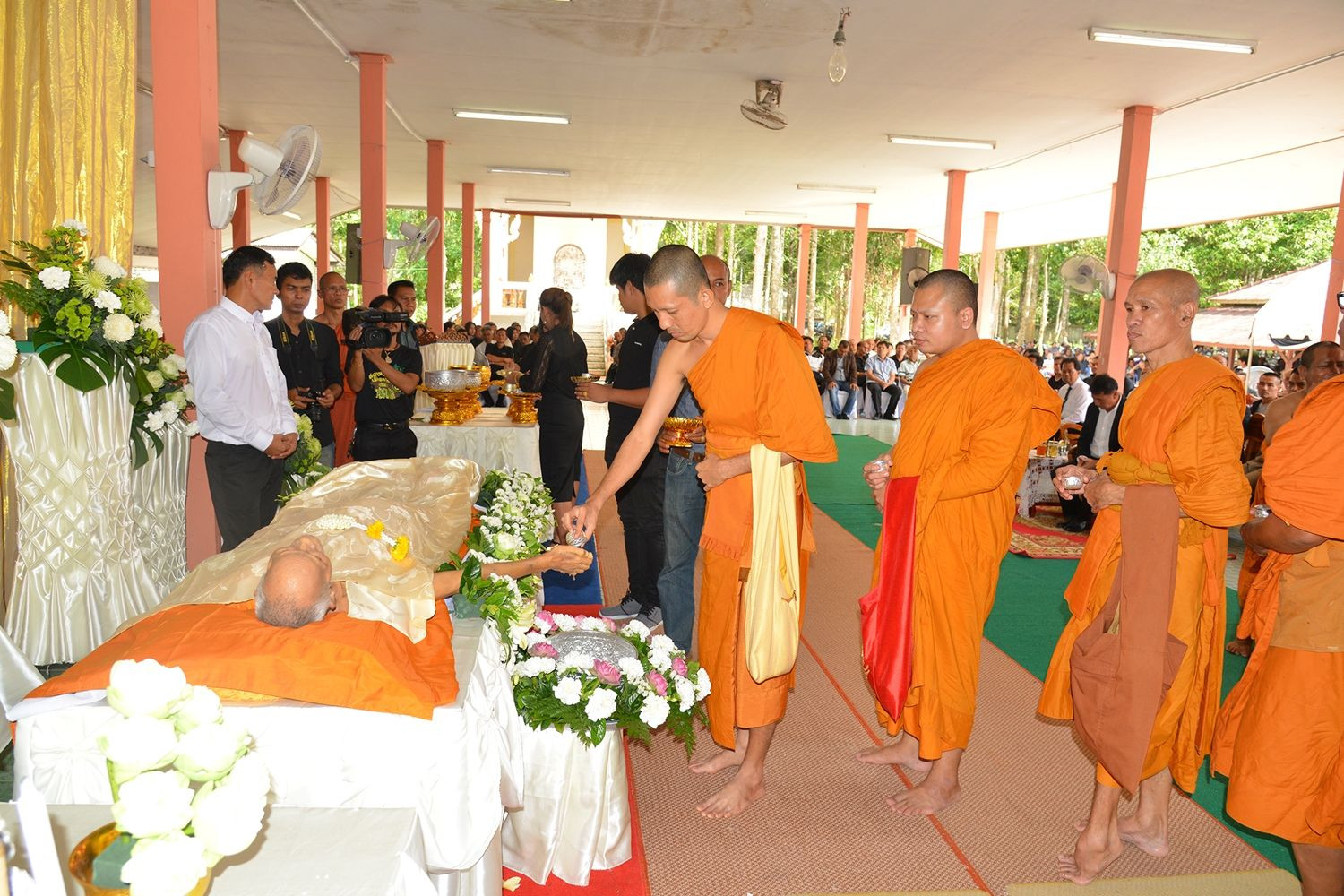 พัทลุง-ข้าราชการพ่อค้าประชาชน ร่วมสรงน้ำศพพระมหามงคล เจ้าอาวาสวัดเขาวงก์ ผู้สร้างโรงเรียนพระพุทธศาสนาที่มีนักเรียนมากที่สุดในพื้นที่