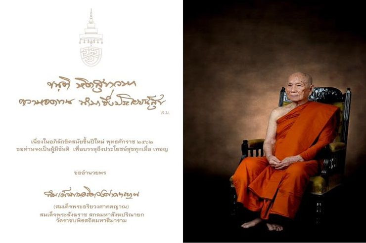 เมื่อวันที่ 18 ธ.ค. เพจเฟซบุ๊ก สำนักงานเลขานุการสมเด็จพระสังฆราช เผยแพร่ข้อความว่า เนื่องในอภิลักขิตสมัยขึ้นปีใหม่ พุทธศักราช 2562 เจ้าพระคุณ สมเด็จพระอริยวงศาคตญาณ สมเด็จพระสังฆราช สกลมหาสังฆปริณายก โปรดประทานพระรูป ฉายเมื่อวันที่ 24 พฤศจิกายน 2561 ณ ตำหนักอรุณ วัดราชบพิธสถิตมหาสีมาราม ประทับพระเก้าอี้สำหรับเจ้าอาวาส ซึ่งพระบาทสมเด็จพระจุลจอมเกล้าเจ้าอยู่หัว พระราชทานแก่วัดราชบพิธสถิตมหาสีมาราม เป็นเครื่องสังเค็ดงานพระเมรุ สมเด็จพระปิยมาวดี ศรีพัชรินทรมาตา พระสนมเอกในรัชกาลที่ 4, พระอัยยิกาในรัชกาลที่ 6 และในรัชกาลที่ 7, พระปัยยิกาในรัชกาลที่ 8 และในรัชกาลที่ 9