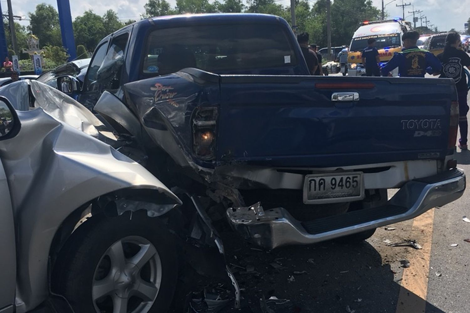 นครศรีธรรมราช-กระบะชนกัน3คันรวดที่ถนนเทิดพระเกียรติเจ็บ6รายดับ2ศพ เมืองคอนช่วง7วันอันตรายตายแล้ว4ศพ