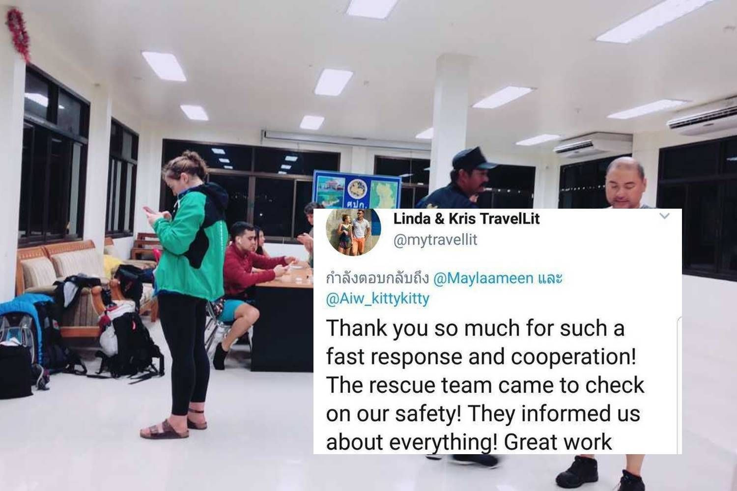 ต่อมานักท่องเที่ยวได้ส่งข้อความทวิตเตอร์ขอบคุณเจ้าหน้าที่ของไทยด้วยความซาบซึ้งใจเป็นอย่างมากที่ให้การช่วยเหลือด้วยความรวดเร็วปลอดภัยและให้การดูแลเป็นอย่างดีทั้งที่พักและอาหาร