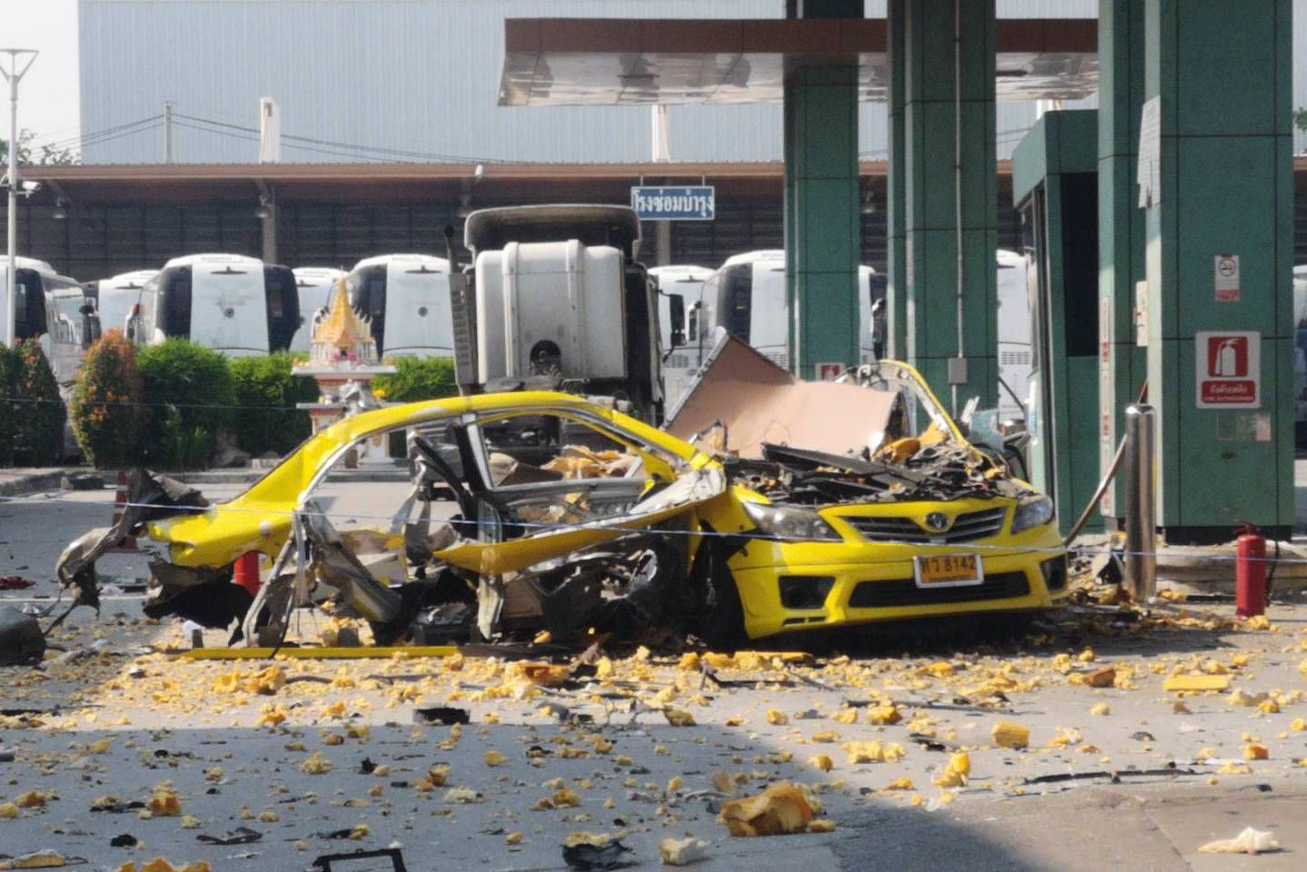 สิ้นเสียงระเบิดได้พบว่ารถแท็กซี่คันดังกล่าวตัวถังฉีกจนแหลกทั้งคัน จึงรีบเปิดประตูรถวิ่งหนีตายออกจากตัวรถไปตั้งหลักก่อนรีบโทรแจ้งขอความช่วยเหลือจากเจ้าหน้าที่ตำรวจ