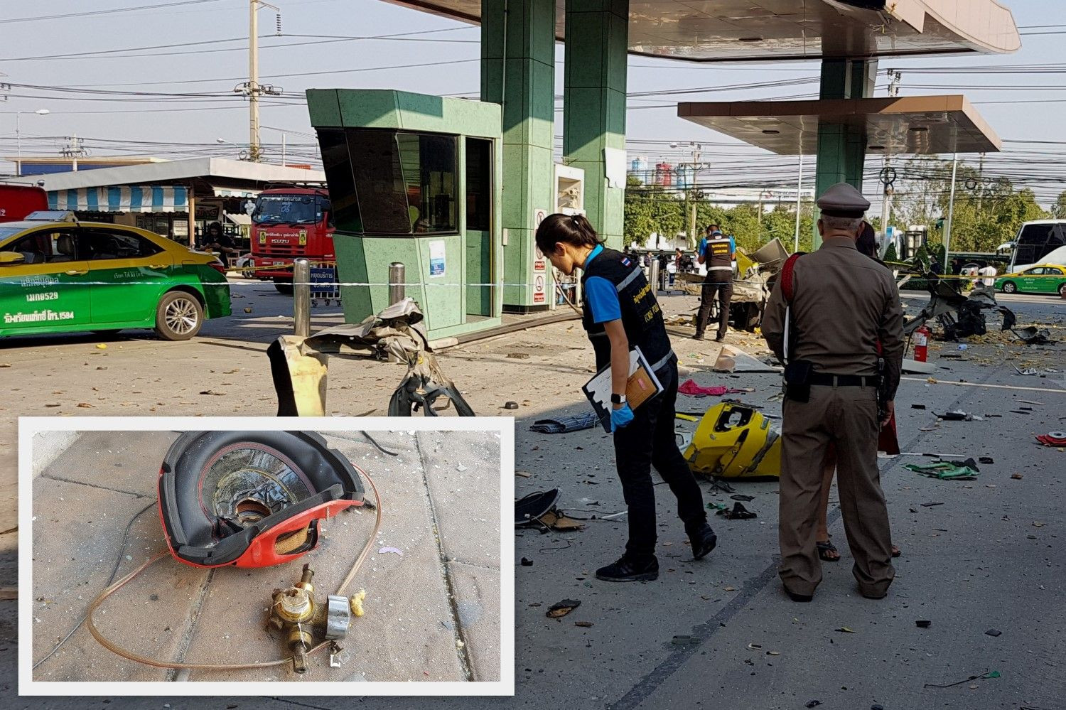 ตำรวจส่งซากถังก๊าซของแท็กซี่ที่เกิดระเบิดในปั๊มย่านซอยวัดศรีวารีน้อยไปตรวจคุณภาพ เผยผลตรวจป้ายทะเบียนพบหมดอายุแล้วแต่ยังนำมาวิ่ง