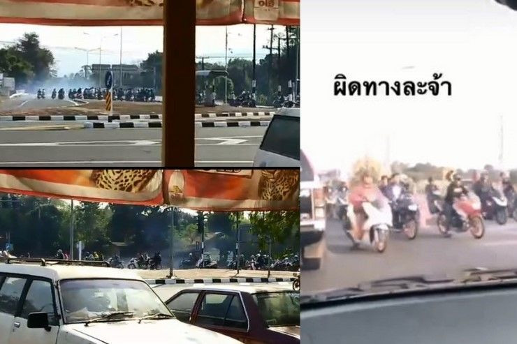 ขณะที่ผู้ใช้เฟซบุ๊กชื่อ “Chartkla Ao Sarika Uta” เผยแพร่พฤติกรรมที่กลุ่มรถจักรยานยนต์จำนวนมากนี้ขับขี่กันด้วยความประมาทหวาดเสียว พร้อมเตือนประชาชนและนักท่องเที่ยวให้หลีกเลี่ยงเพื่อความปลอดภัย