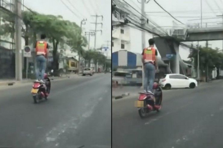 ตำรวจแจ้ง 5 ข้อหาคนขับรถจักรยานยนต์รับจ้างยืนบนเบาะ เจ้าตัวรับทำเพราะคึกคะนอง-สัญญาจะไม่ทำอีกแล้ว
