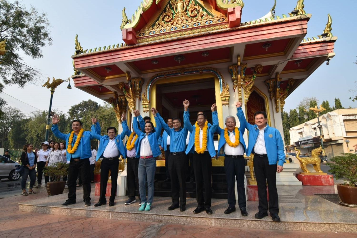 กาญจนบุรี-หัวหน้าพรรคปชป.ลงพื้นที่ช่วยผู้สมัครสส.หาเสียงมั่นใจได้เก้าอี้5ที่นั่งยกจังหวัดประกาศรับใช้ชาวกาญจน์