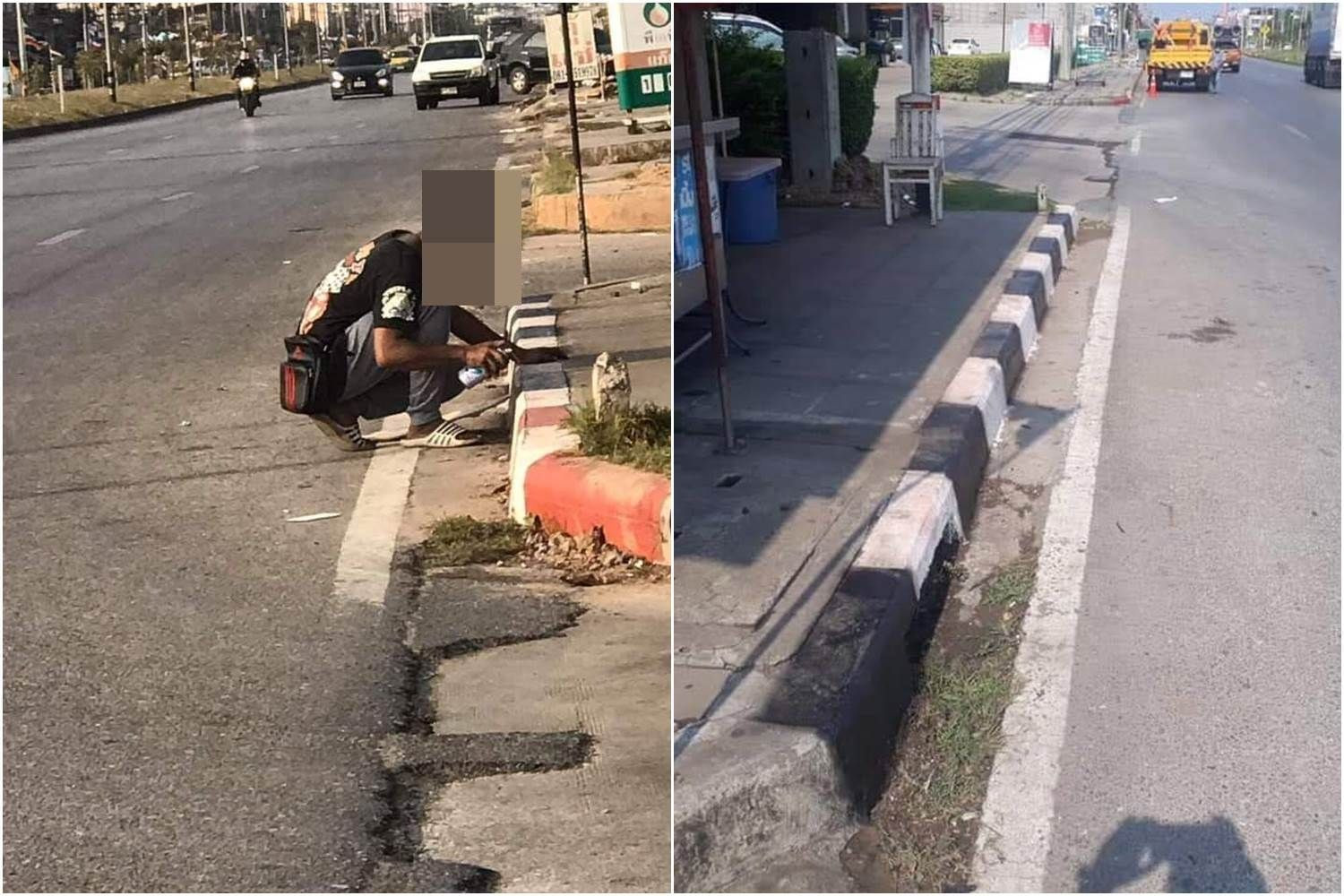 ร้านค้าหัวหมอทาสีทับแถบขาวแดงริมทางเท้าให้จอดรถได้ เจอเจ้าหน้าที่แก้เกมแบบทันควัน