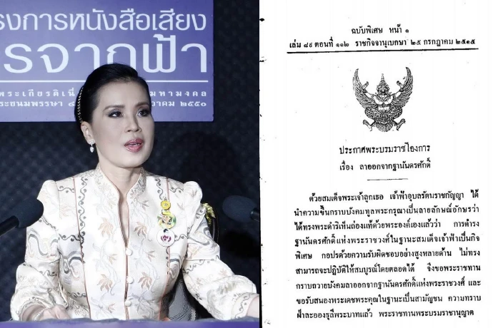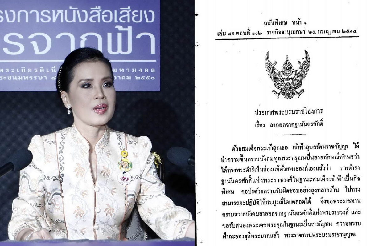ย้อนชมราชกิจจาฯฉบับประวัติศาสตร์เผยแพร่ประกาศพระบรมราชโองการ "ทูลกระหม่อมหญิงอุบลรัตนฯ" ทรงลาออกจากฐานันดรศักดิ์แห่งพระราชวงศ์