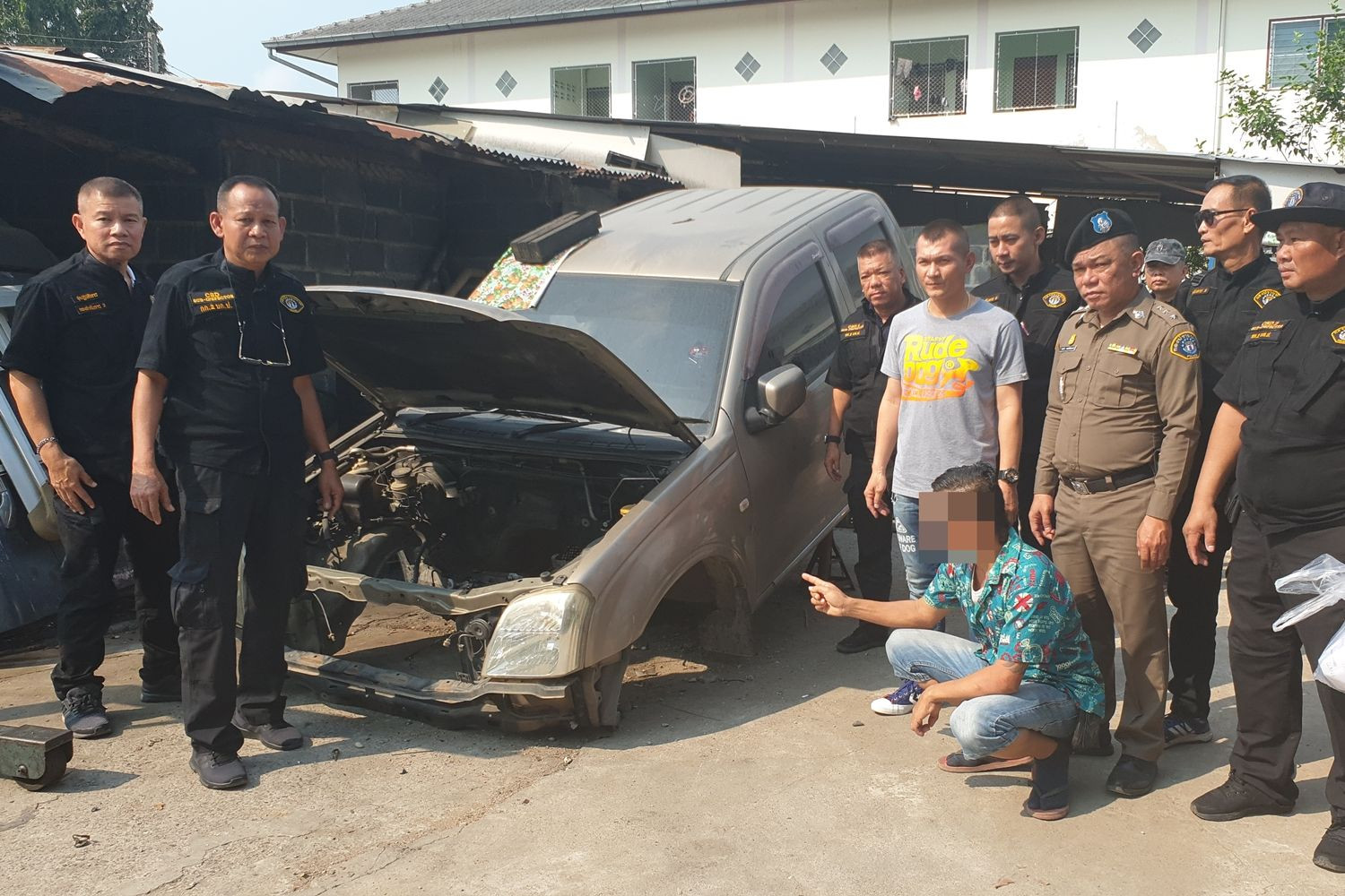 พ.ต.อ.อรุณ วชิรศรีสุกัญยา ผกก.2 บก.ป. เปิดเผยว่า หลังจากผู้เสียหายเข้ามาประสานให้ติด ตามหารถที่ถูกโจรกรรม จึงลงพื้นที่สืบสวนติดตามจับกุม จนทราบว่ารถคันดังกล่าวถูกนำมาชำแหละที่อู่ดัง กล่าว นอกจากนั้นในวันนี้ยังแบ่งกำลังออกตรวจค้นอีก 2 จุด คืออู่ซ่อมรถบริเวณอ่างเก็บน้ำมาบประชัน และร้านขายอะไหล่รถยนต์มือสองบริเวณถนนสายบายพาส 36 ในพื้นที่ อ.บางละมุง จ.ชลบุรี แต่ไม่พบสิ่งผิด กหฏหมายใดๆ