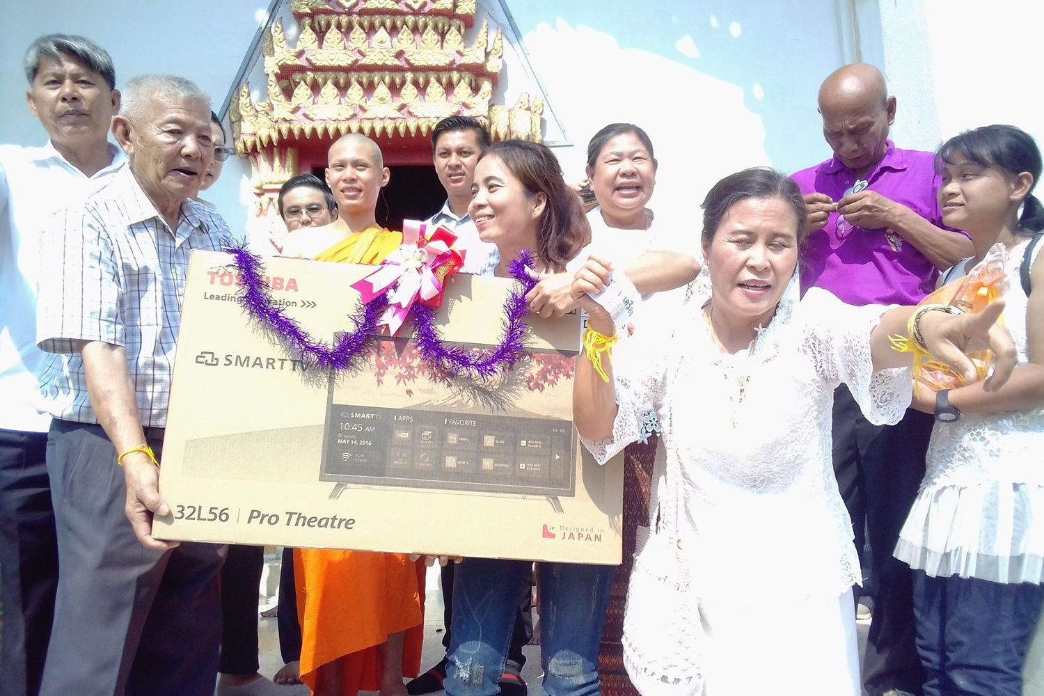 เจ้าของฟาร์มหมูบวชลูกชายใช้เงินนับแสนโปรยทานแถมมอบทีวีจักรยาน