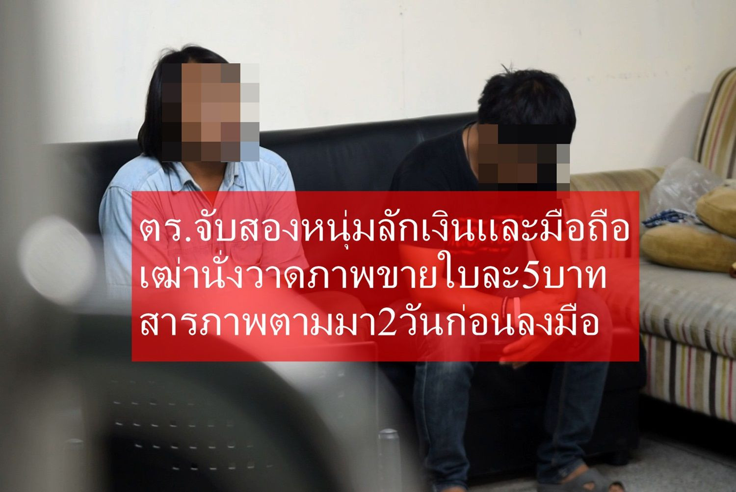 ตำรวจจับ2หนุ่มลักมือถือ-เงินเฒ่านั่งวาดภาพขายใบละ5บาทคุมตัวทำแผน