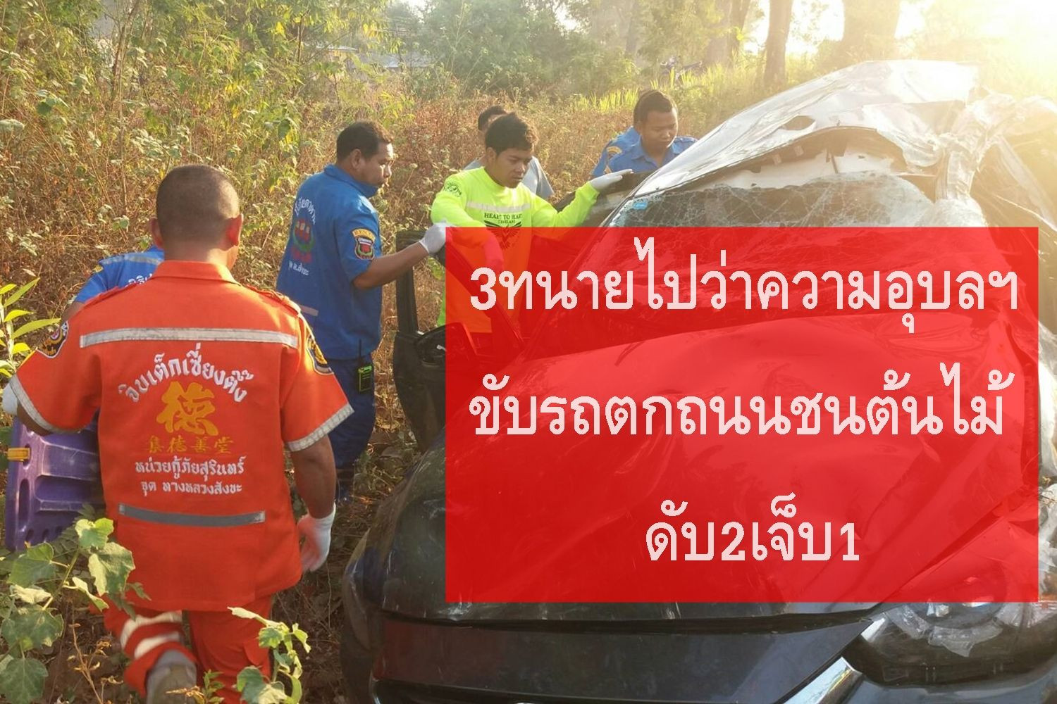 สุรินทร์-3ทนายเดินทางจากกทม.ไปว่าความที่อุบลฯขับรถตกถนนชนต้นไม้ตาย 2 เจ็บ 1 ขณะชาวบ้านเห็นเหตุการณ์แฉมีรถยนต์คันอื่นพุ่งชนท้ายก่อน