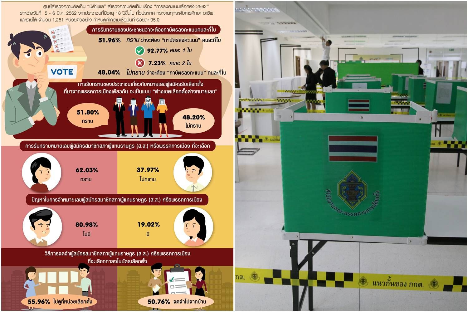 นิด้าโพลเผยคน 48% ยังไม่รู้ต้องกาบัตรเลือกตั้งกี่ใบ และไม่รู้ว่าผู้สมัครต่างเขตเลือกตั้ง ต่างหมายเลขกัน