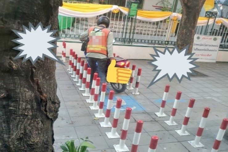การที่กรุงเทพมหานคร ติดตั้งแท่งเหล็กขวางบริเวณฟุตปาธถือเป็นอีกหนึ่งมาตรการในการป้องกันไม่ให้ผู้ใช้จักรยานยนต์ขึ้นไปขับขี่บนทางเท้าที่มีประชาชนเดินสัญจรอยู่