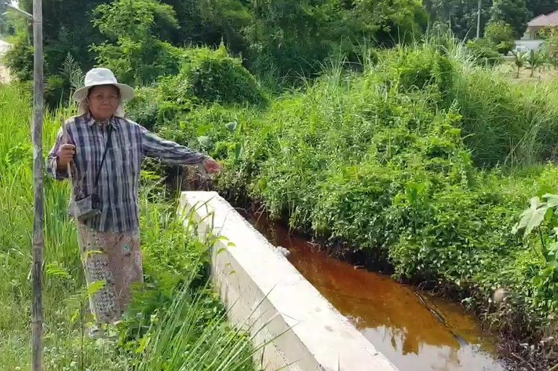 ทุกข์ชาวบ้านหนองไม้แก่น!มือดีปล่อยคราบน้ำมันลงคลองสาธารณะ