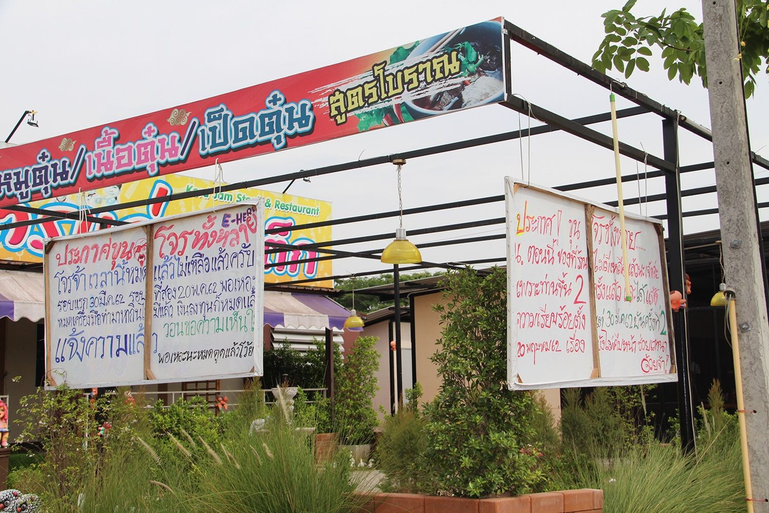 ที่ร้านอาหารสเต็กโคตรแจ่ม ตั้งอยู่เลขที่338 ริมถนนสายบายพาสเลี่ยงเมือง หมู่ที่ 3 ต.พงสวาย อ.เมือง จ.ราชบุรี ได้ขึ้นป้ายไว้หน้าร้านจำนวน 2 ป้าย มีข้อความว่า“ ประกาศขุนโจรทั้งหลายโจรจ๋าเวลานี้หมดแล้ว ไม่เหลือแล้วครับ รอบ30 มี.ค.62รอบที่สอง 20 พ.ค.62 พอเหอะหมดเครื่องมือทำมาหากินแล้ว ไม่มีแล้ว เงินลงทุนก็หมดแล้ว แจ้งความแล้ว วอนขอความเห็นใจ พอเหนอะหมดตูดแล้วโว้ย"